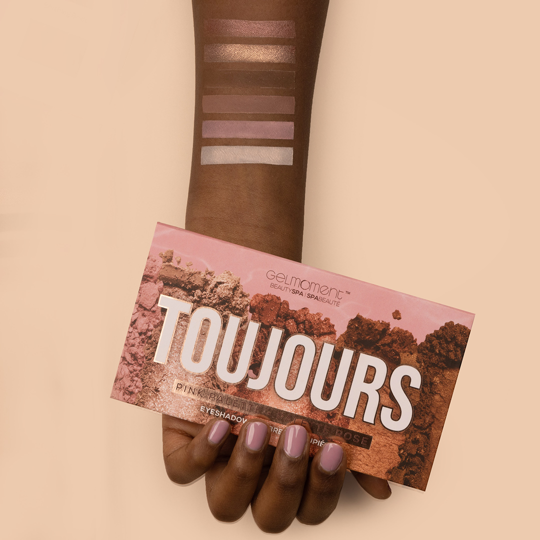 See the world through rose-coloured eyelids with the lovely tones of TOUJOURS Pink Palette: Winter’s Kiss, Aphrodite, Blushing Bride, Love Potion, Irresistible, and Flirt Alert.